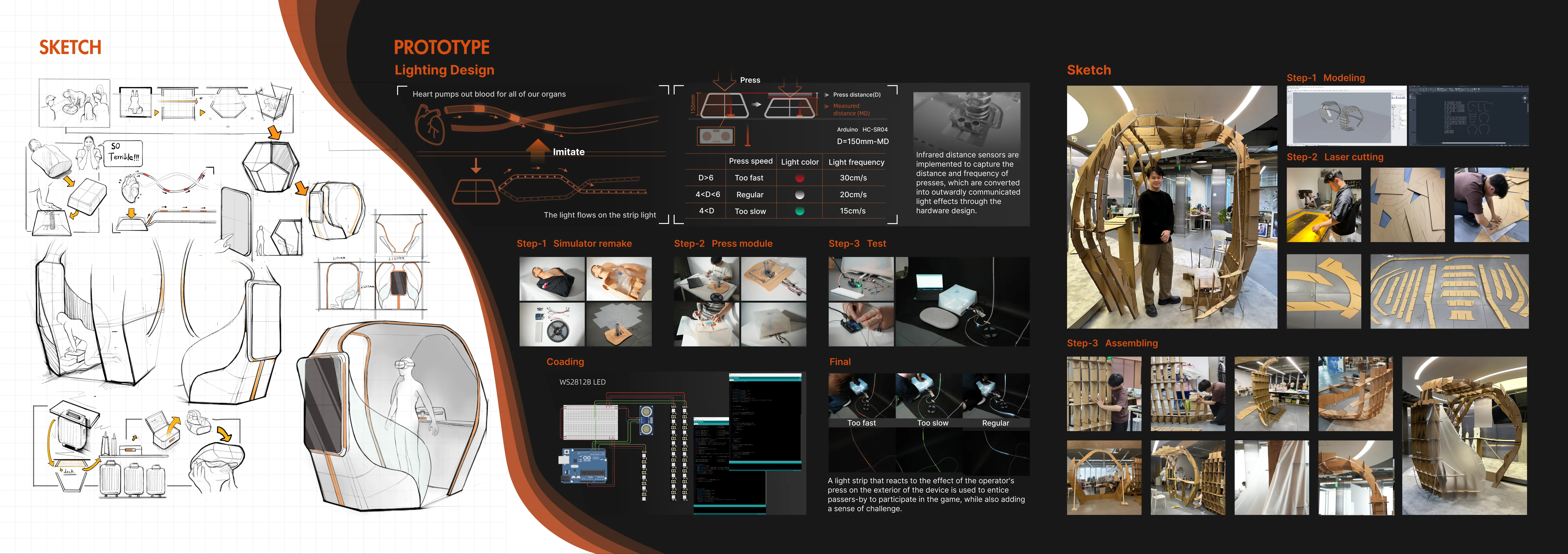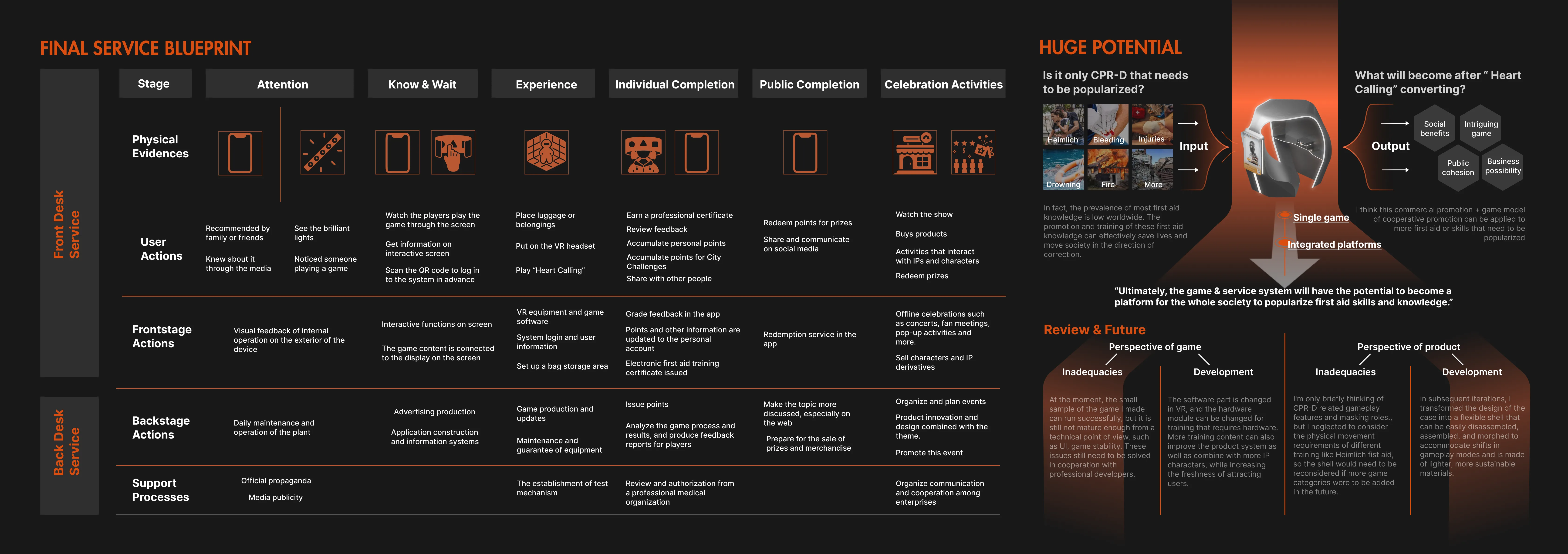 Based on the Chinese context, this project pioneered the use of social public play services to increase the penetration of CPR and AED. Through gamification, VR interaction, and physical prototype installation, Heart Calling bridges the gap between public accessibility and practice of first aid skills.