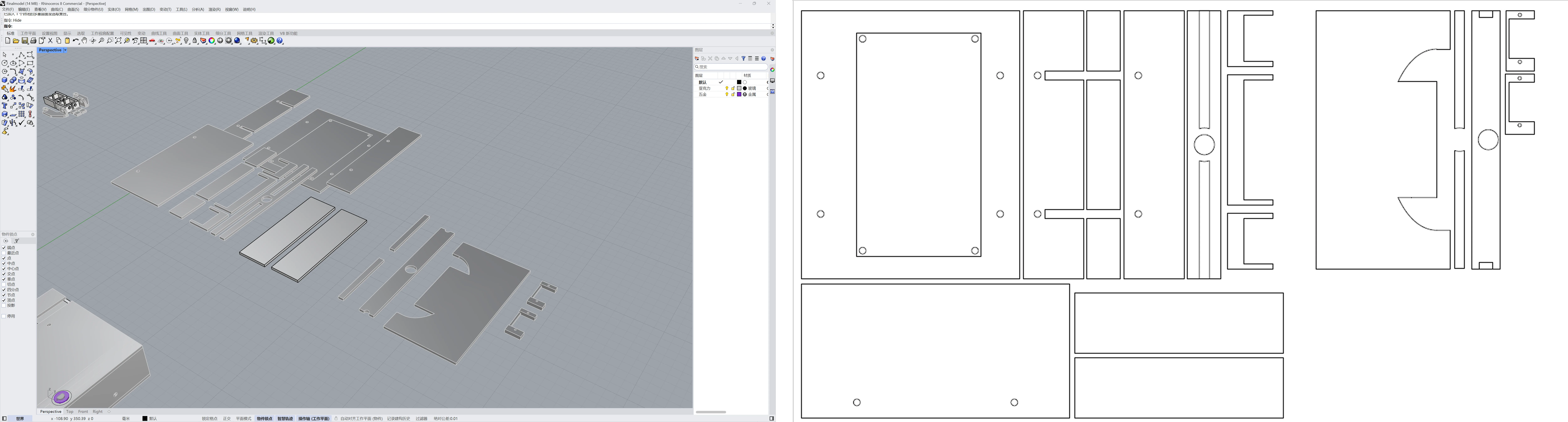 The enclosure is modeled in Rhino and laser-cut from textured acrylic. An origami book structure mounts on the servo arms, creating the kinetic page-fold mechanic that makes time visible.